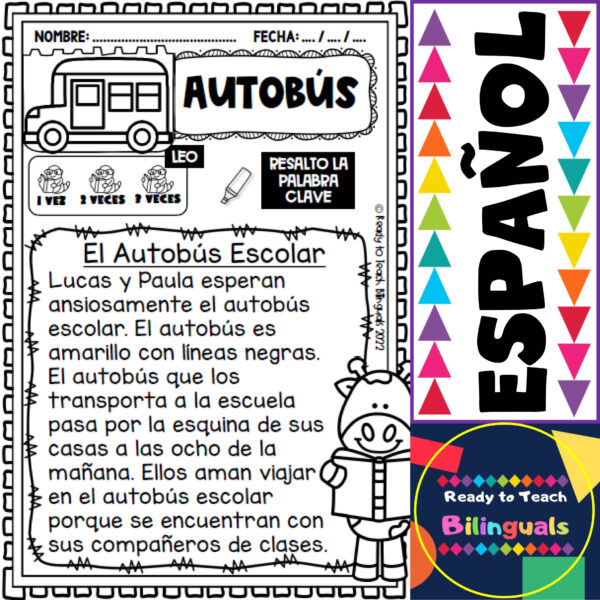 Reading Fluency Passages in Spanish (Lecturas de fluidez) is a set of 20 passages for Spanish centers related to Back to School (VUELTA A LA ESCUELA).