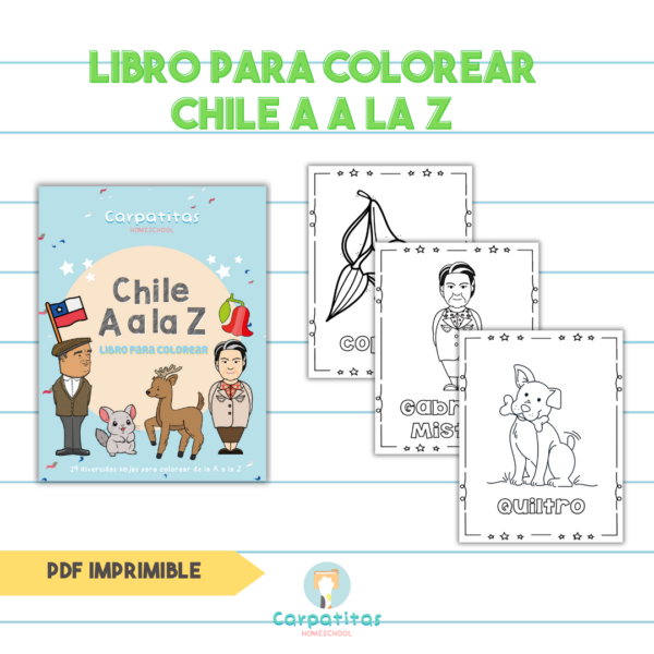 Con este divertido libro para colorear, los niños y niñas podrán pintar dibujos relacionados a Chile desde la letra A a la Z.