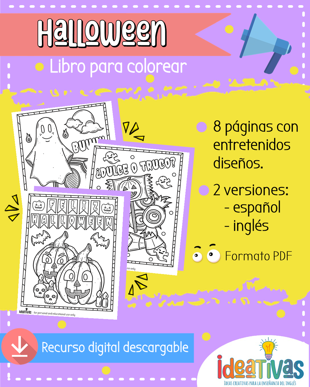 Disfruta de la temporada más espeluznante del año con este lindo libro para colorear de Halloween.