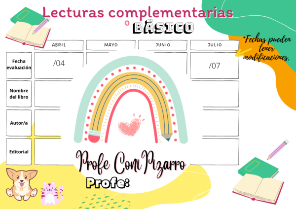 Ideal para que los y las estudiantes escriban cada una de las lecturas que deberán realizar, las fechas de las evaluaciones, los autores y sus respectivas editoriales.
