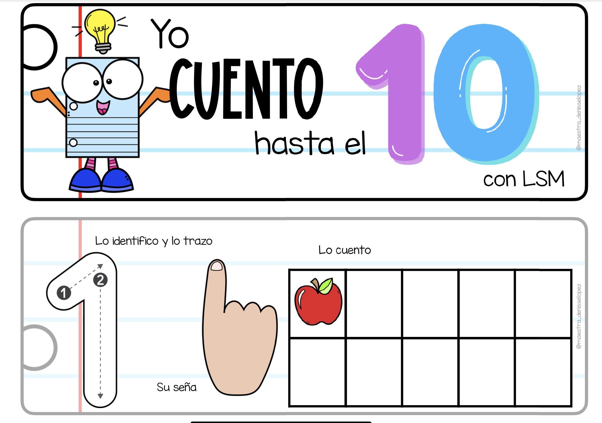 Material ideal para trabajar de forma individual con los niños. Conteo, números y LSM hasta el 10. Tamaño carta, listo para imprimir, recortar y laminar.