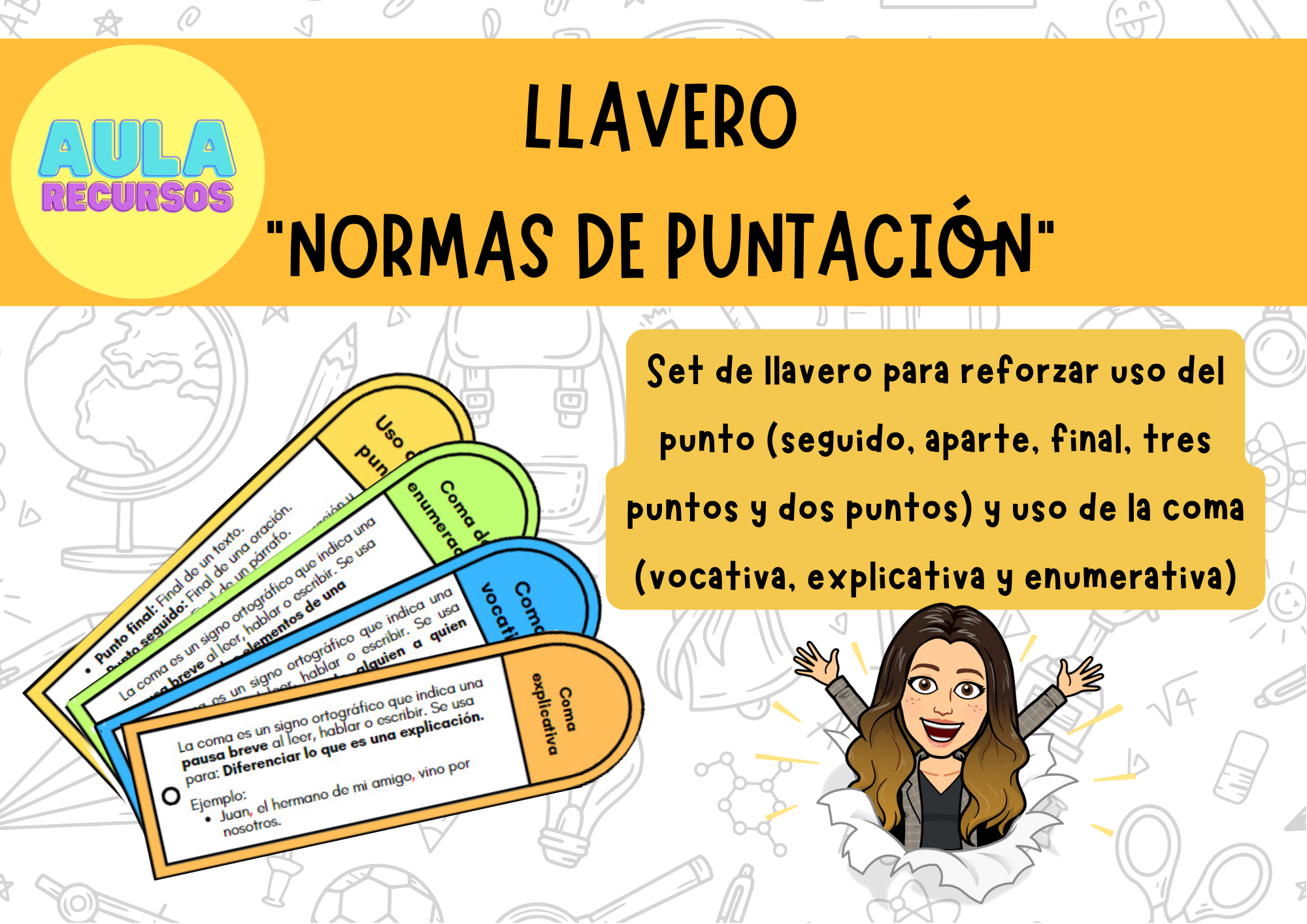 Recurso manipulativo: llavero para reforzar uso del punto (seguido, aparte, final, tres puntos y dos puntos) y uso de la coma (vocativa, explicativa y enumerativa)