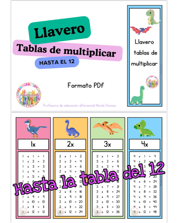 Llavero tablas de multiplicar hasta el 12 en formato PDF