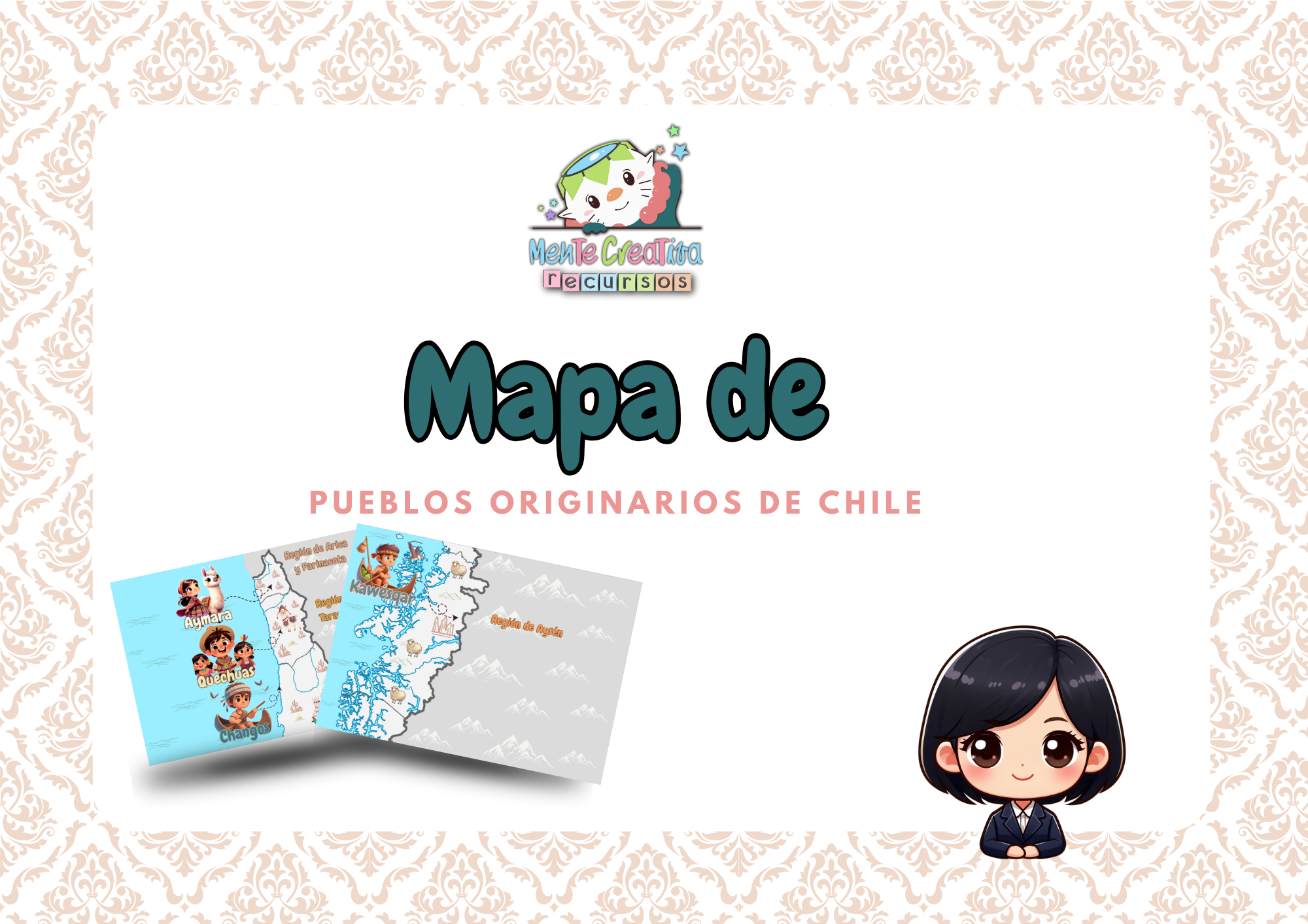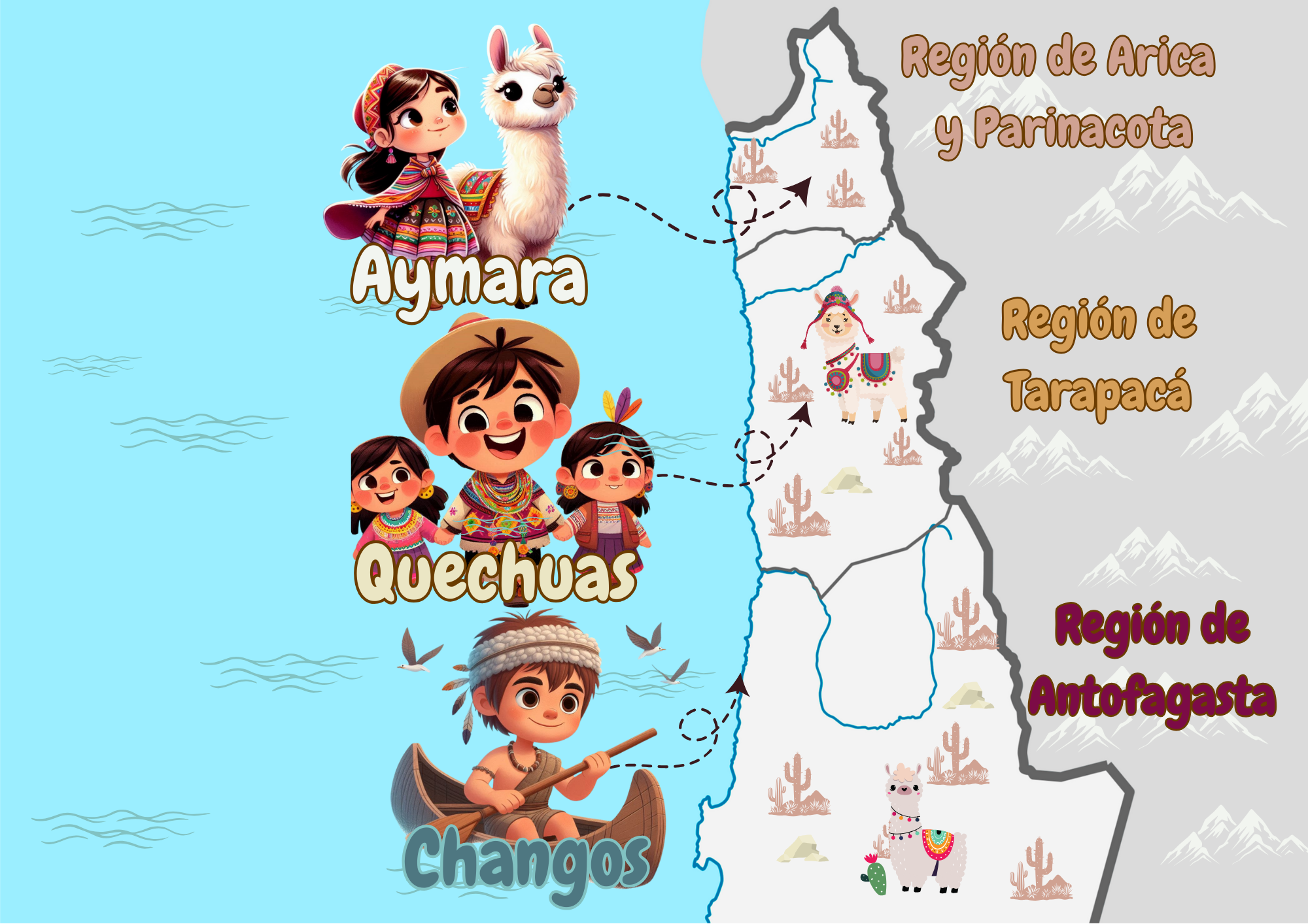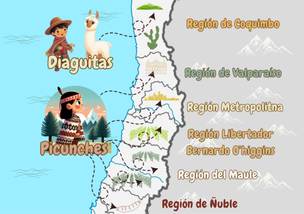 Mapa de Los Pueblos Originarios de Chile, es muy interactivo y tamaño gigante. Ideal para nuestras salas y nuestros pequeños. Contiene: