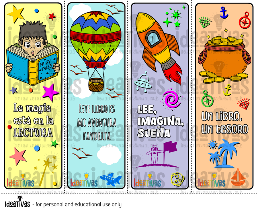✿ Hermosos marcadores de páginas con frases motivacionales para regalar a tus alumnos o pintar con ellos en el Día del Libro.