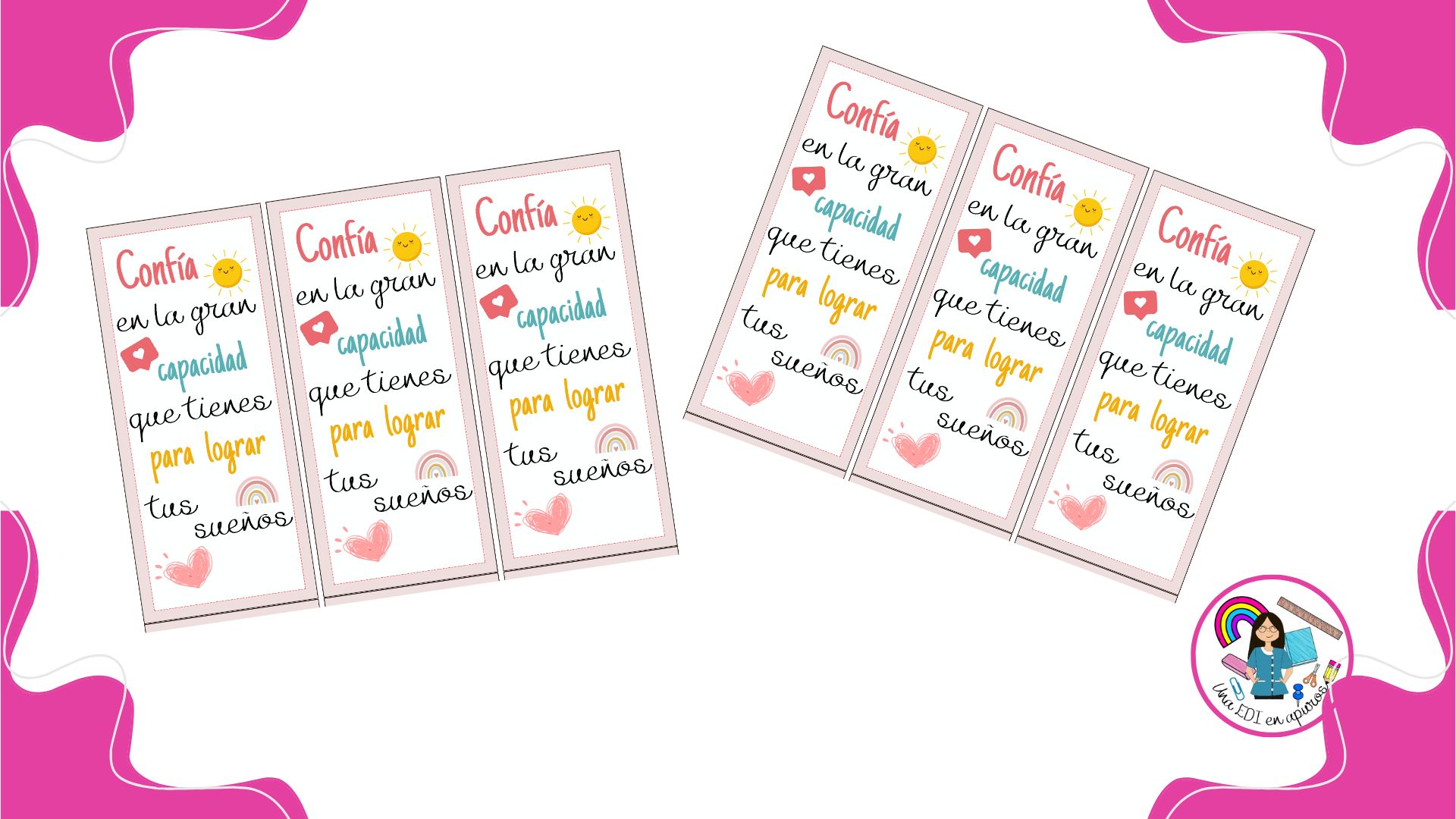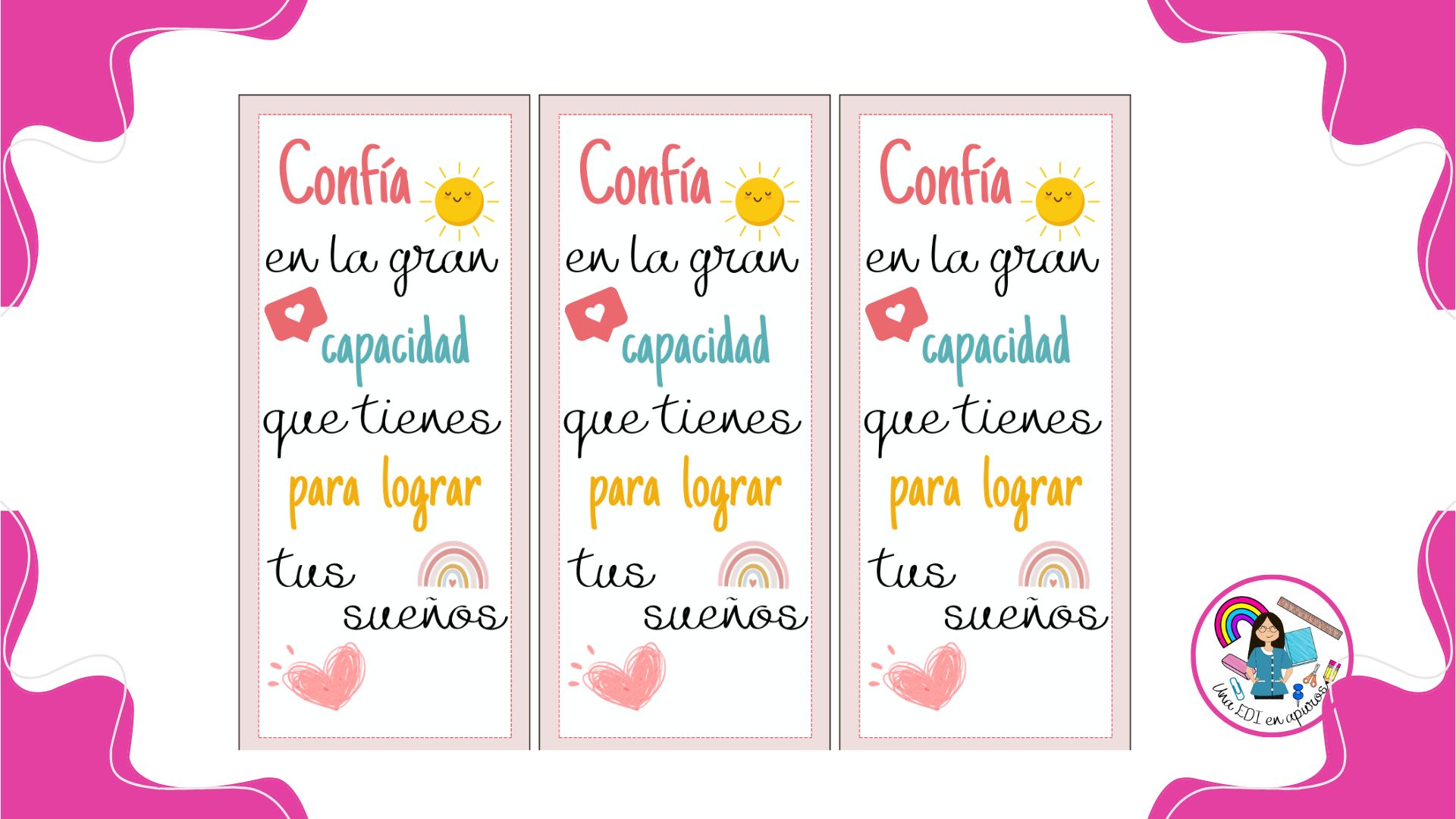 Marcapáginas creado para motivar e ir mejorando la autoestima de mis estudiantes.