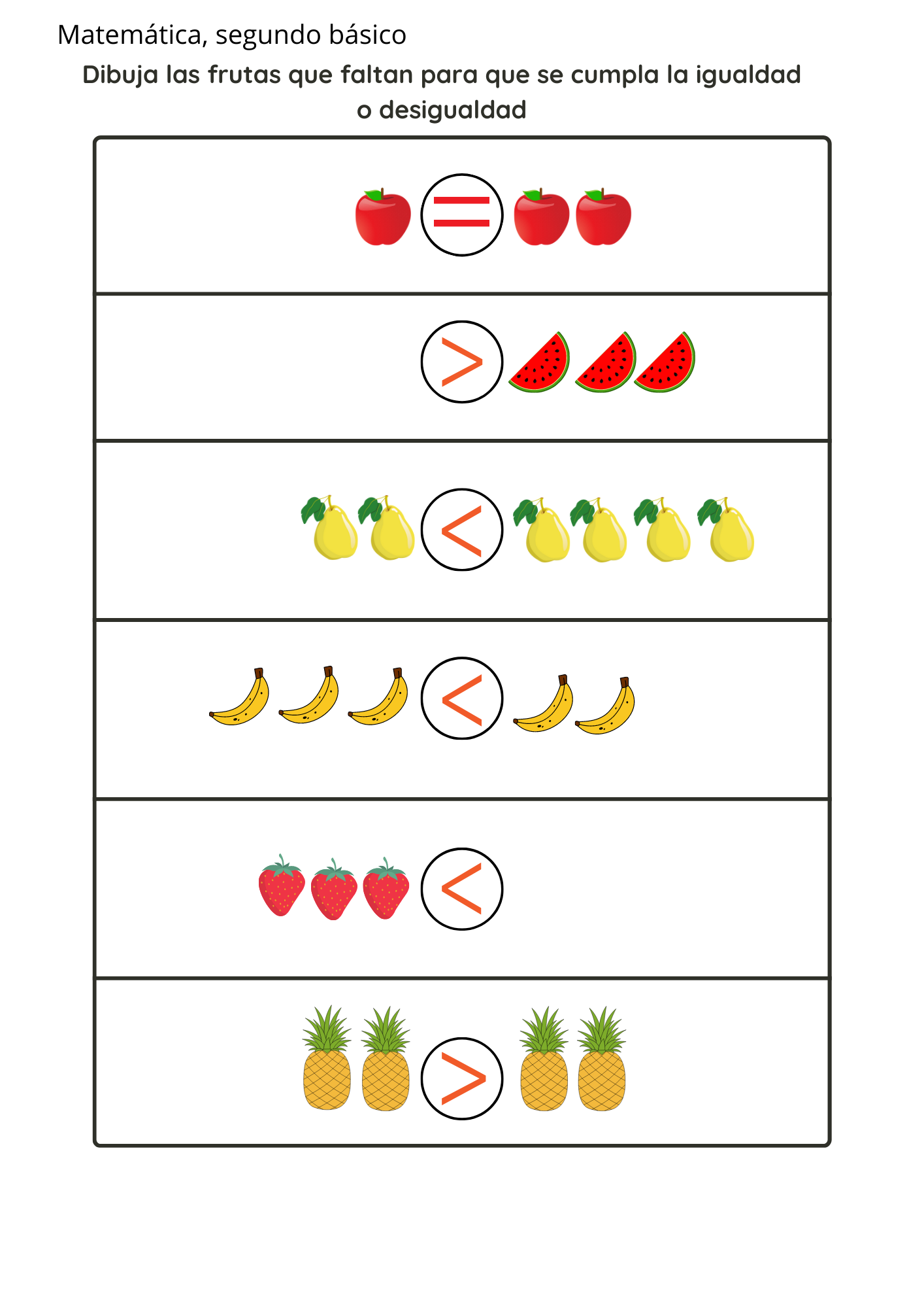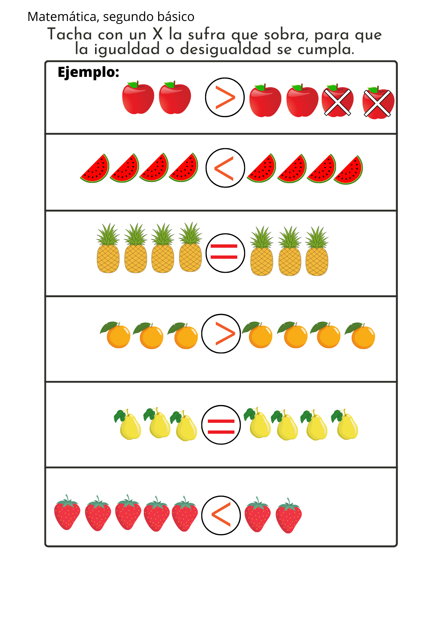 Matemática, Segundo básico, Igualdad y desigualdad