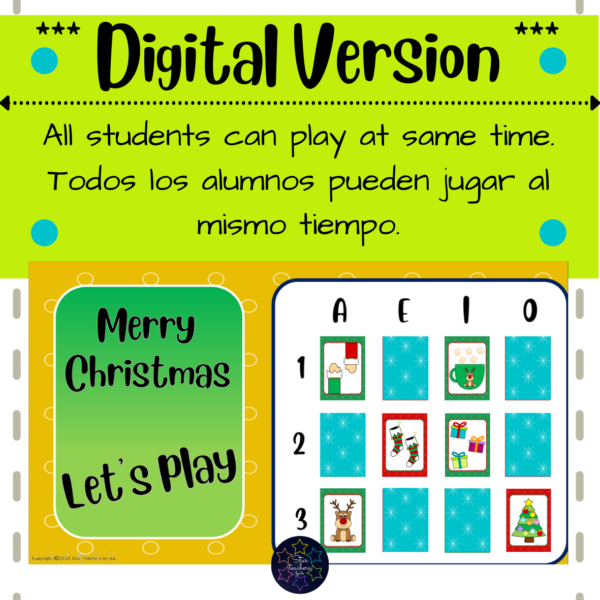 Pueden jugar todos juntos con la Versión de Grupo con guías para ayudar a identificar la posición de cada tarjeta a través de las vocales y los números, TAMBIÉN pueden jugar de forma individual cada uno de tus alumnos.