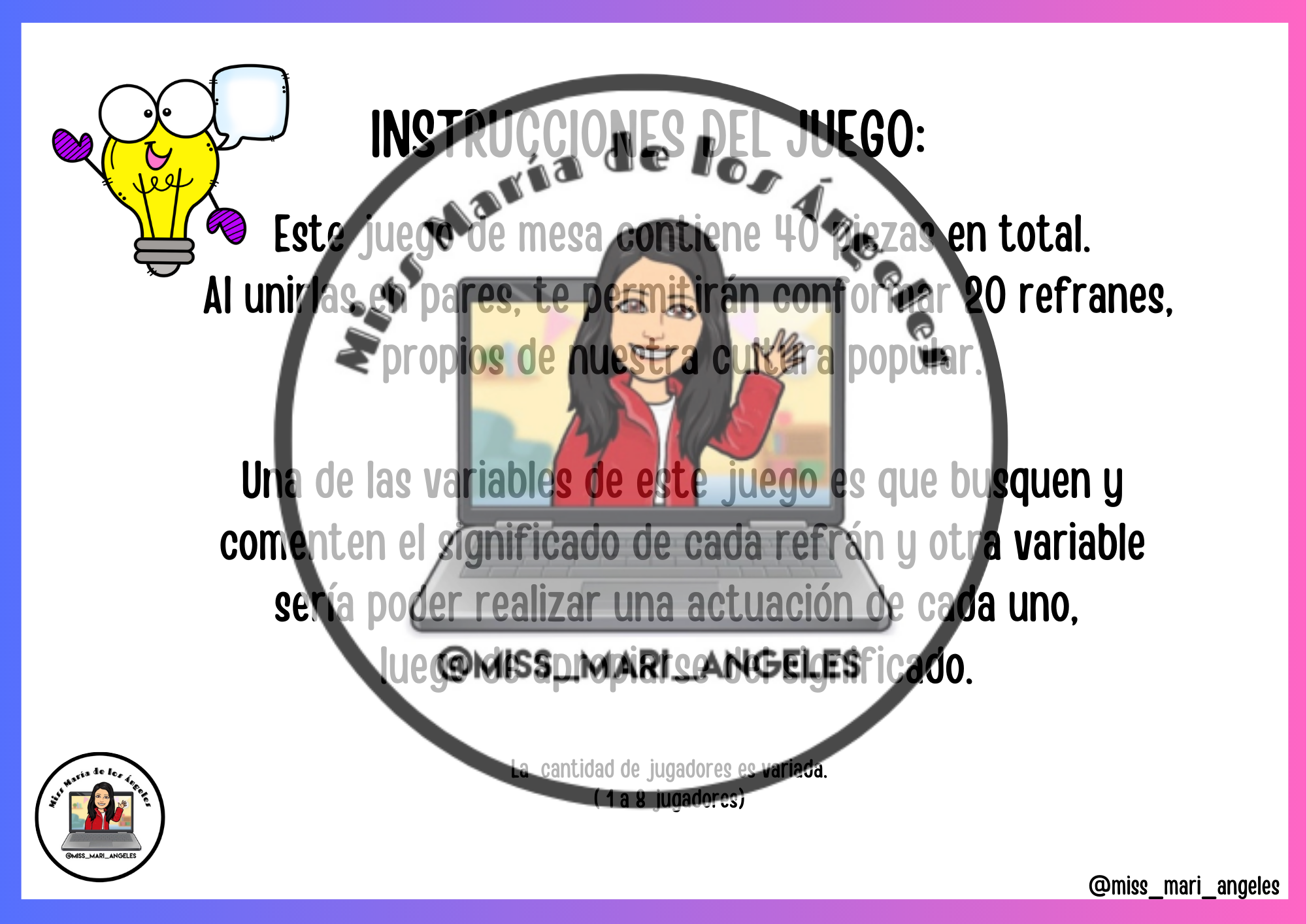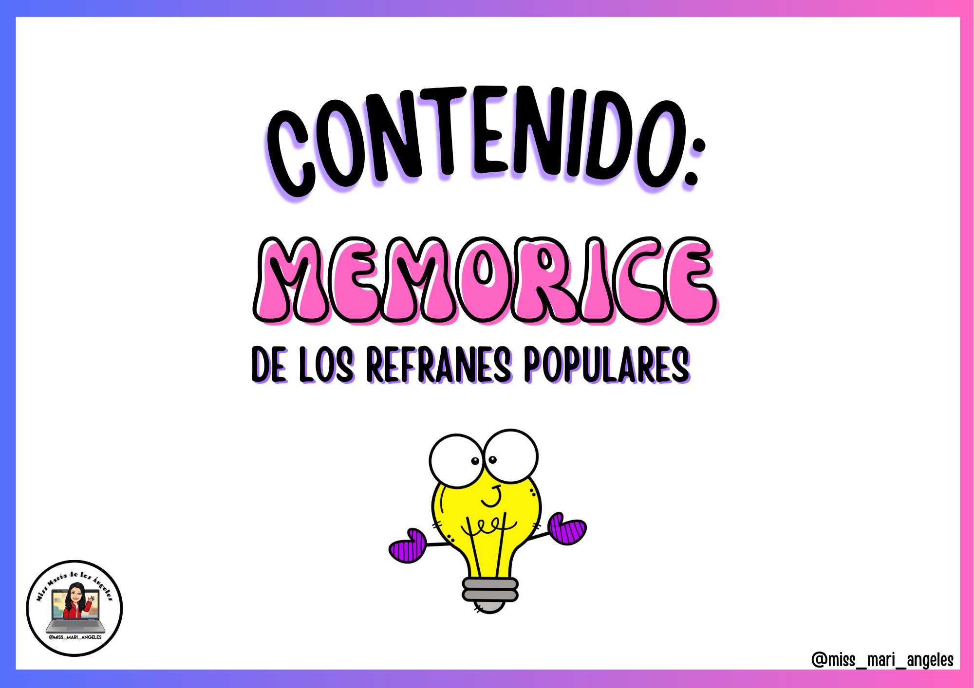 👍 En este recurso encontrarás un memorice de 40 piezas que en su interior contiene 20 refranes populares.