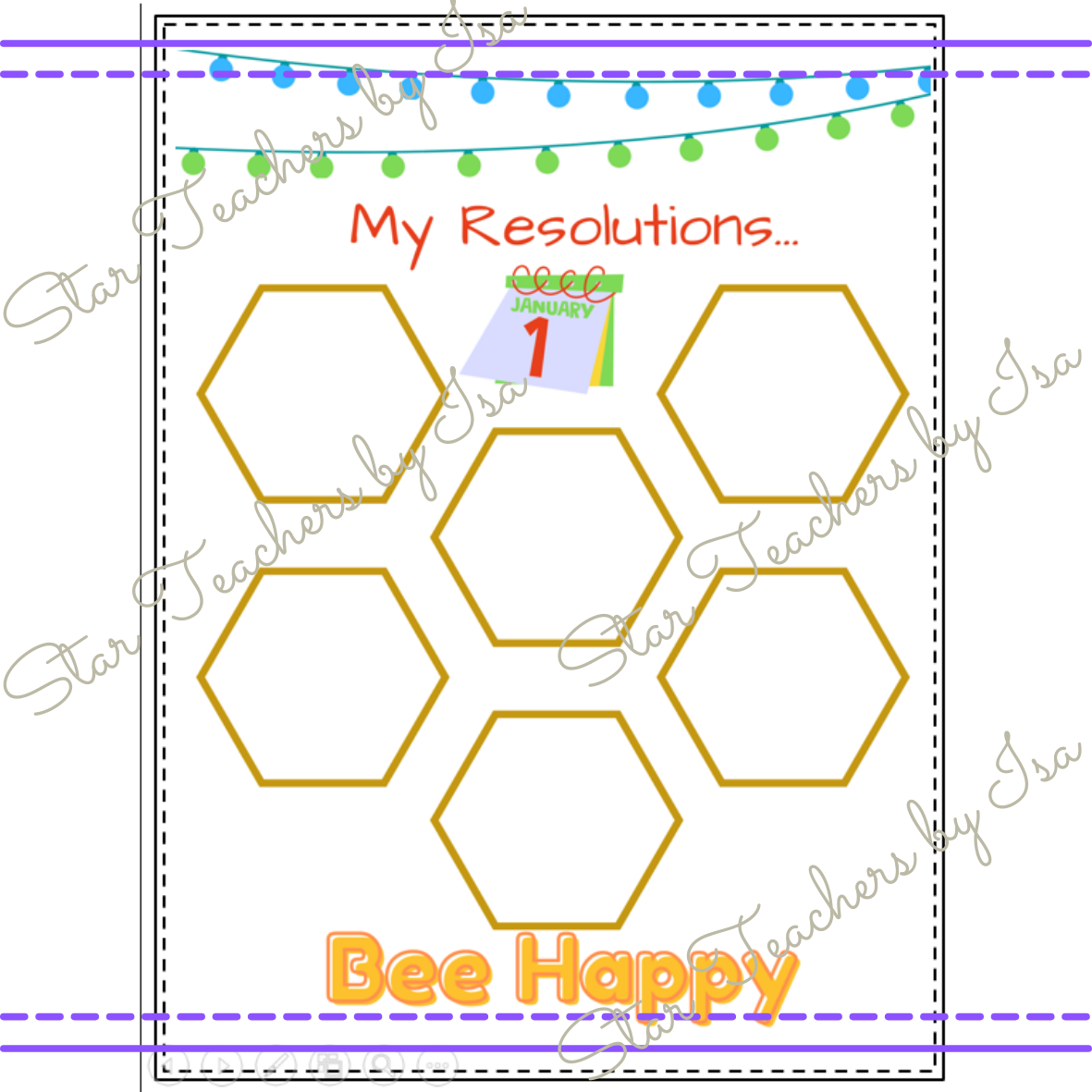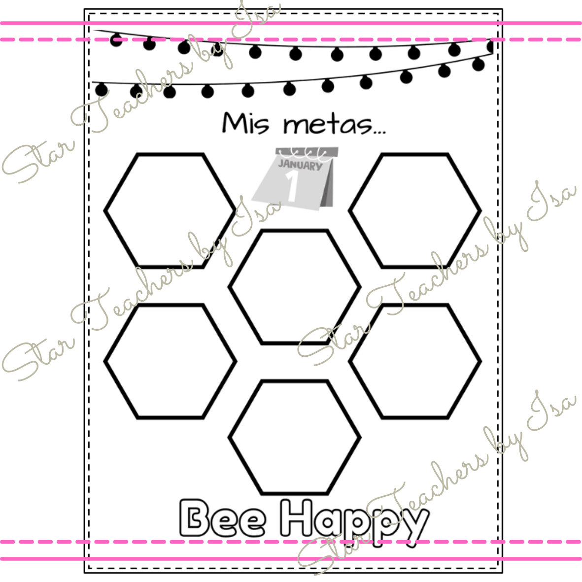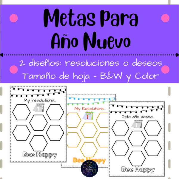 Escribe tus metas para este año nuevo, o este regreso a clases, con el diseño de panal de abejas, con la frase “BEE HAPPY” (Se feliz).