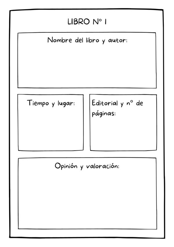 Por cada libro, deberán escribir su título y autor; indicar el tiempo y lugar donde sucede la historia. También escribir su opinión sobre el libro y un resumen.