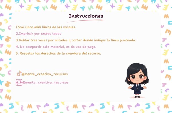 - Instrucciones de cómo armar el mini libro.