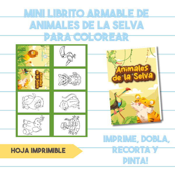 Mini Libro Para Colorear Armable de Animales de la SelvaMini Libro Para Colorear Armable de Animales de la Selva