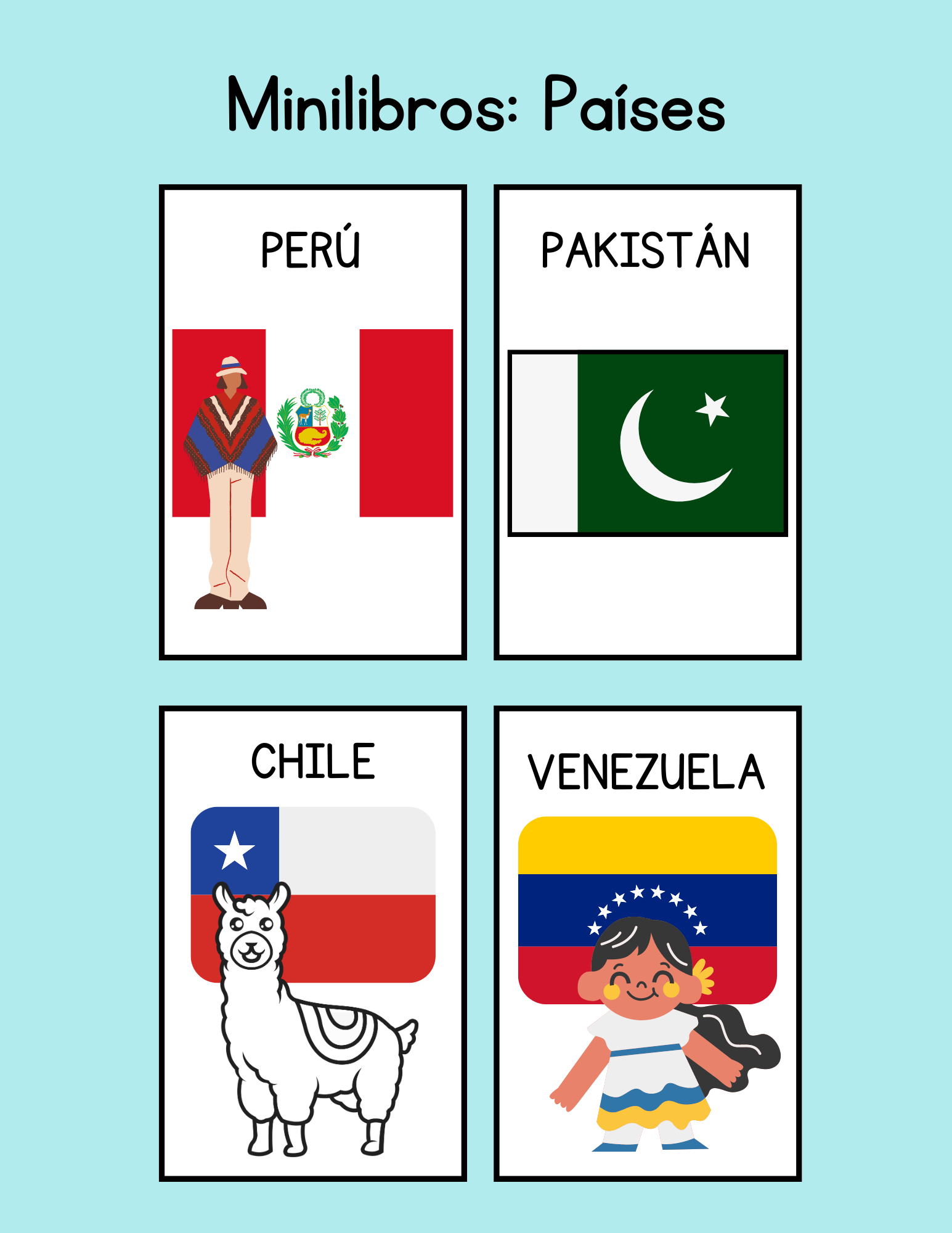 - Descripción del país: Cada minilibro presenta una breve descripción del país, incluyendo su ubicación geográfica, idioma oficial y población.