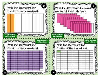 Model decimals and fractions task cards and explanation