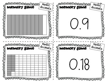 This product includes 40 cards to play memory match game, matching models of decimals and how to write them in numbers.