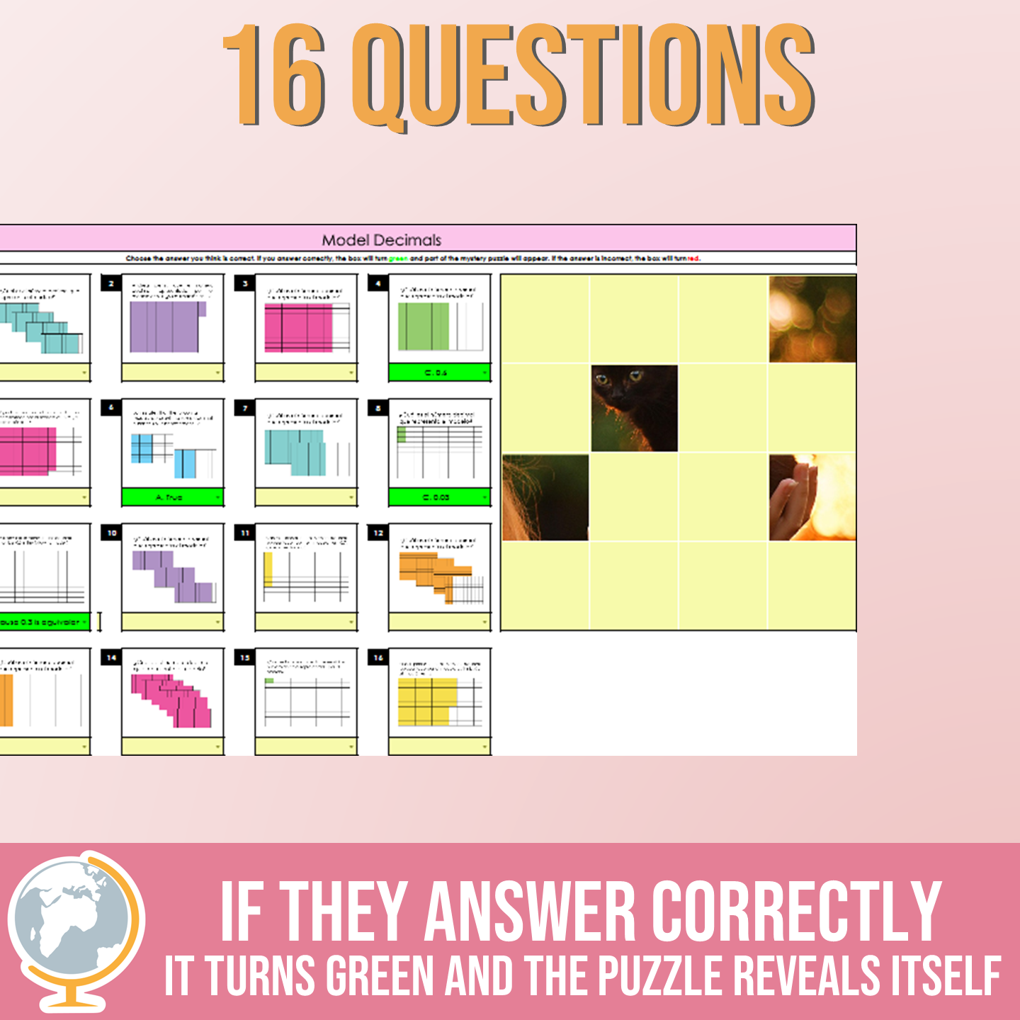 This digital mystery puzzle is the perfect way to get your students to practice model decimals in a fun and effective way. Your students will receive 16 exercises with the correct answer.