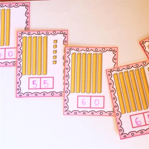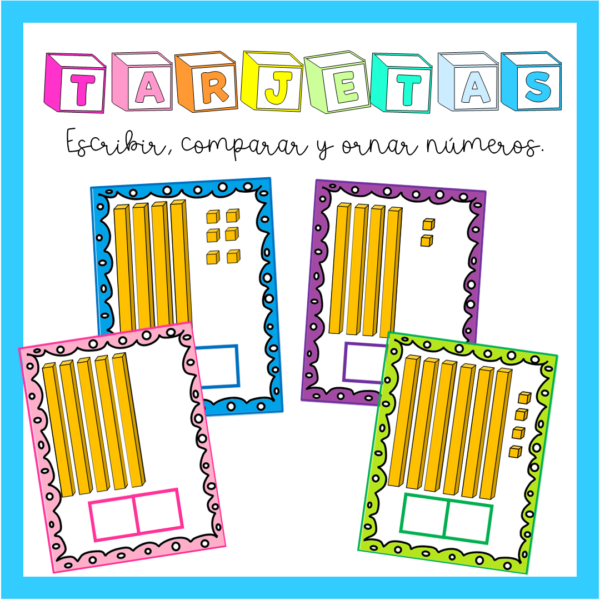 Naipes para: escribir, comparar y ordenar números, 4 set de distinto color.
