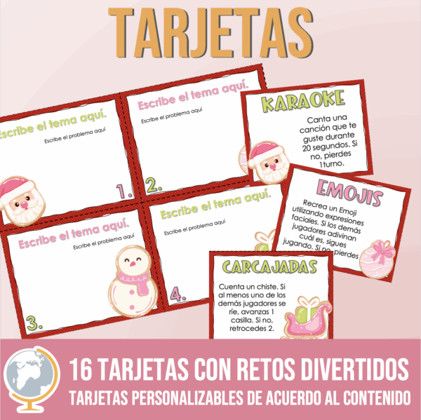 - 🎁 16 tarjetas con retos listos para usar, algunos retos estarán relacionados con el contenido, otros no.