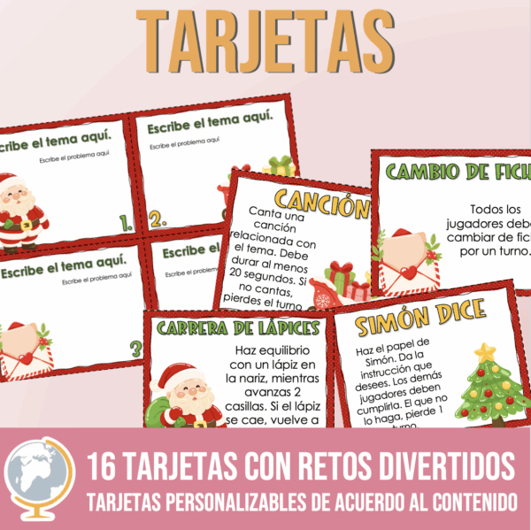 - 🎁 16 tarjetas con retos listos para usar, algunos retos estarán relacionados con el contenido, otros no.