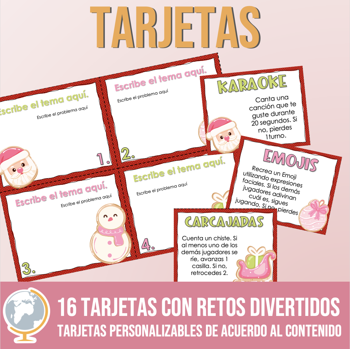 Este recurso está diseñado para hacer de tus clases una experiencia dinámica y memorable durante la temporada navideña. Contiene todo lo necesario para promover el aprendizaje a través del juego: dos tableros con diseños navideños, tarjetas de reto y tarjetas personalizables para que puedas adaptar las preguntas o actividades a tus propios contenidos. Es perfecto para repasar, evaluar de manera informal o simplemente disfrutar de una clase divertida sin perder el propósito académico.