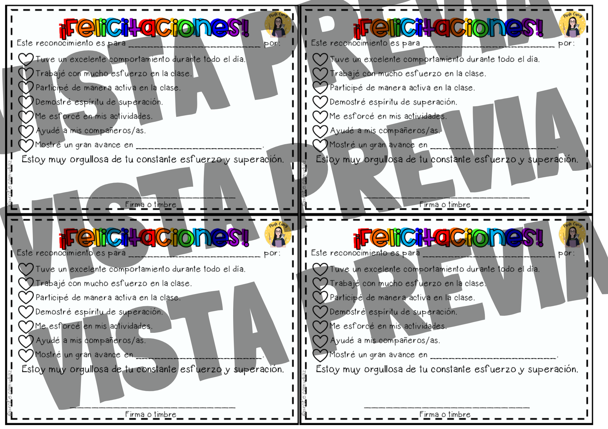 - 4 diseños de notas con felicitaciones, viene en dos versiones: una a color y la otra en blanco y negro.