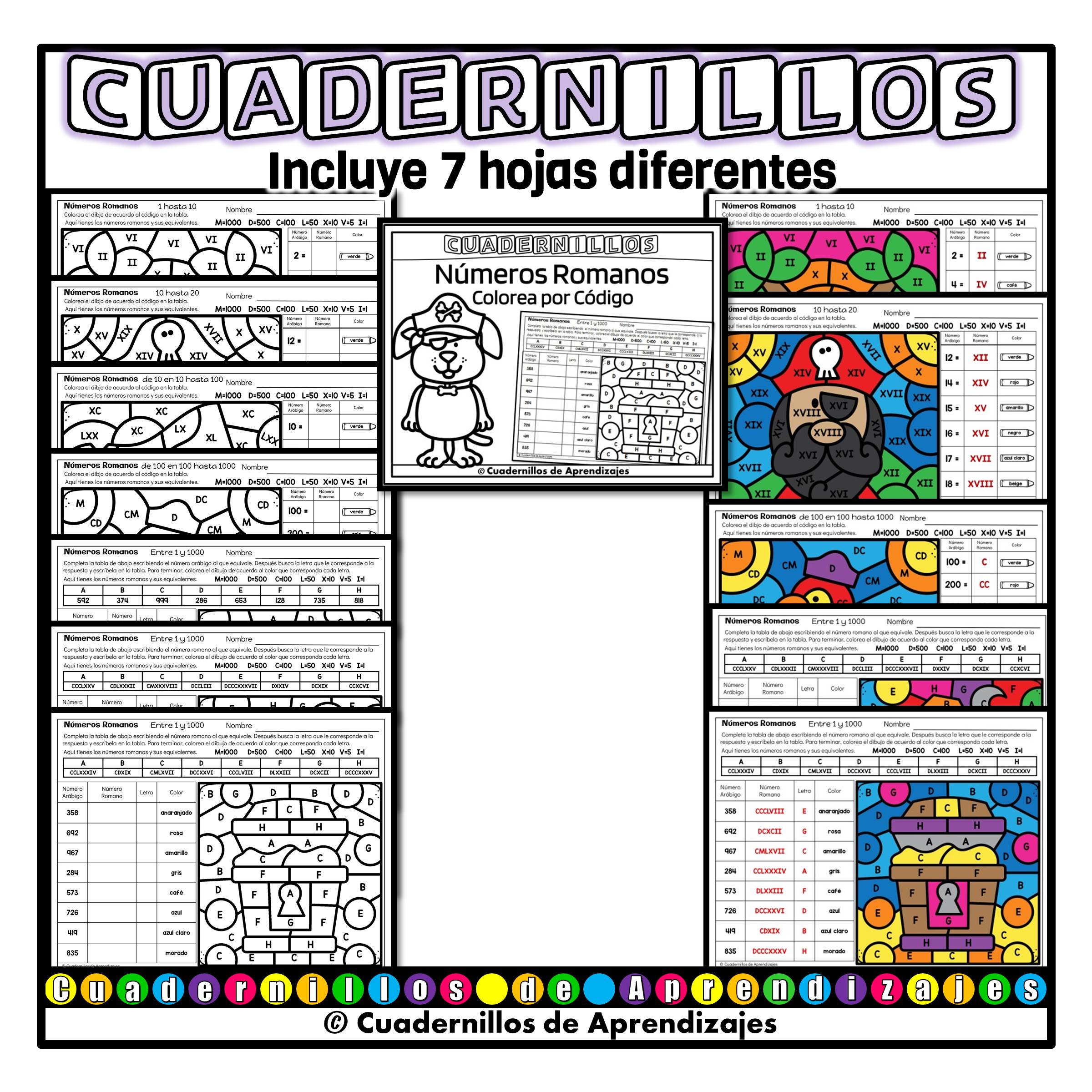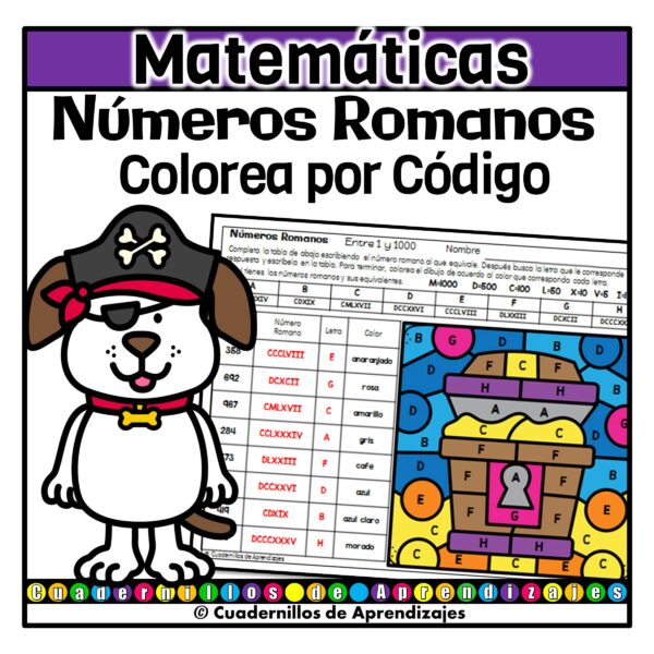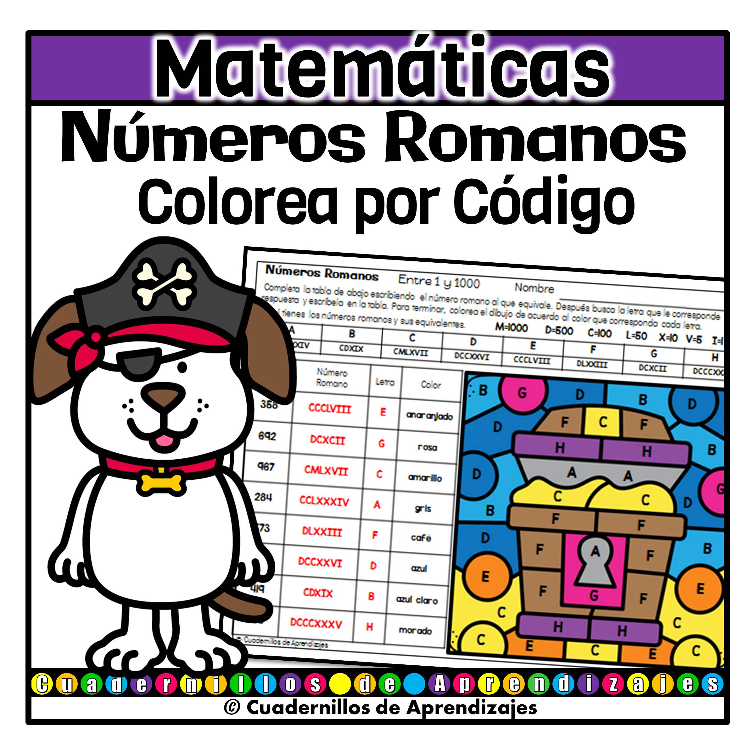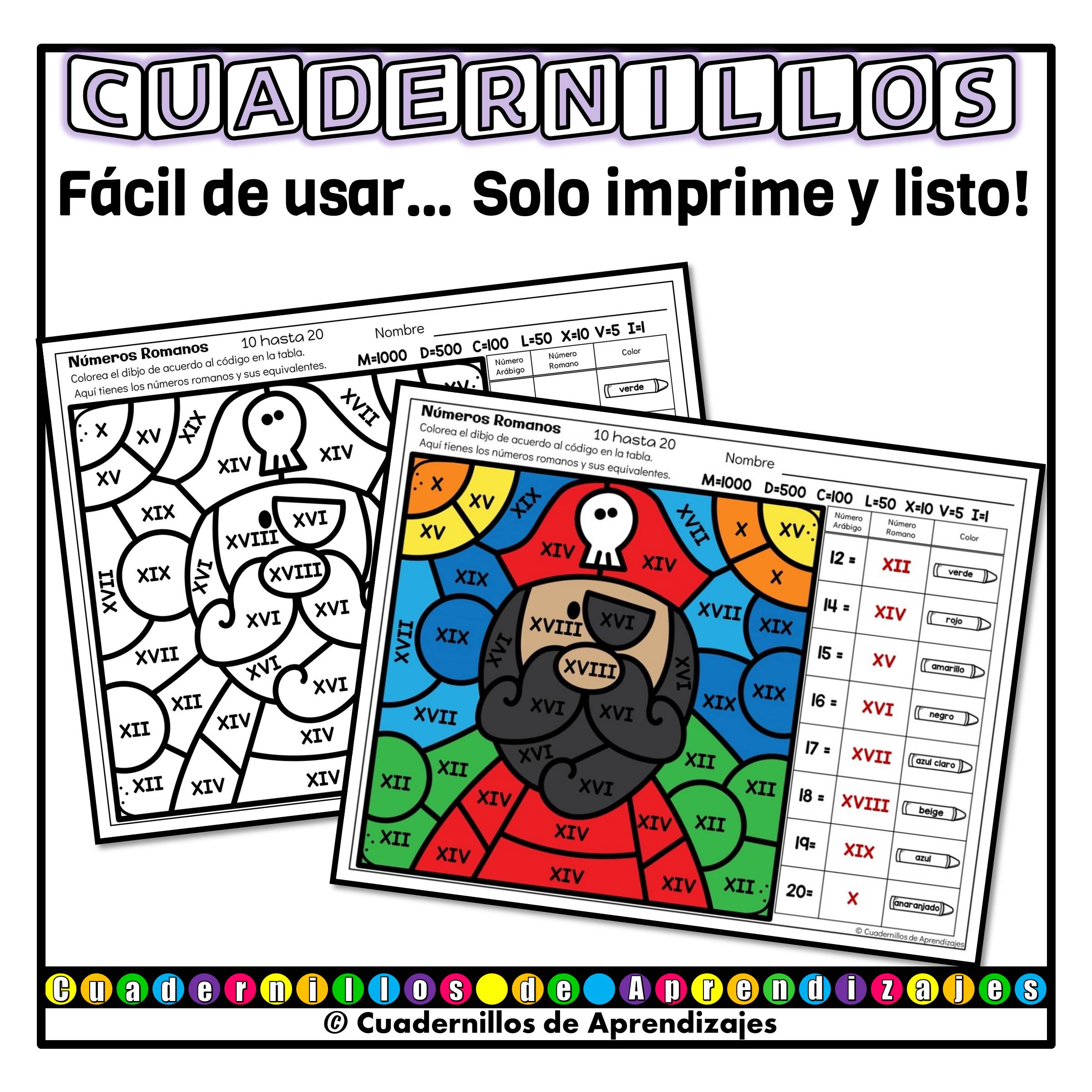 Números Romanos Colorea por Código es una divertida actividad de matemáticas para niños de primaia. Perfecta para repasar o practicar la escritura y lectura de números romanos.