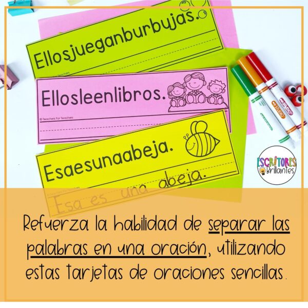 Requiere de dedicación para poder apoyarles a escribir las oraciones separando las palabras.