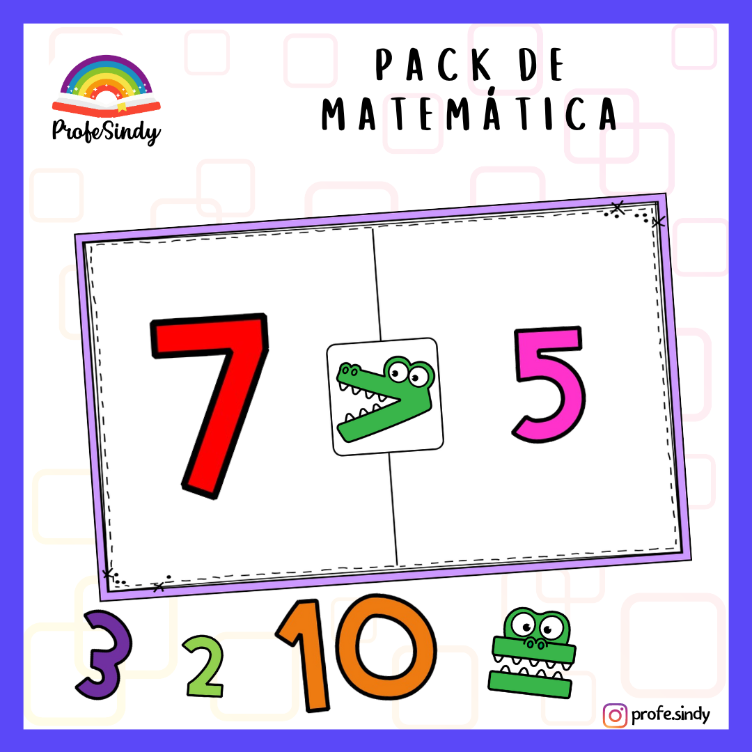 Set de materiales para trabajar en matemática que consiste en números del 1 al 10 representados por tamaños, frascos que representan cantidades, imágenes de cocodrilo mayor, menor e igual. Con todos estos materiales podrás trabajar diversos contenidos tales como: