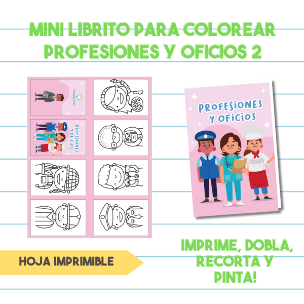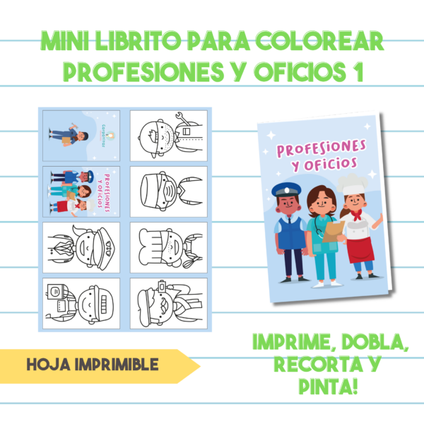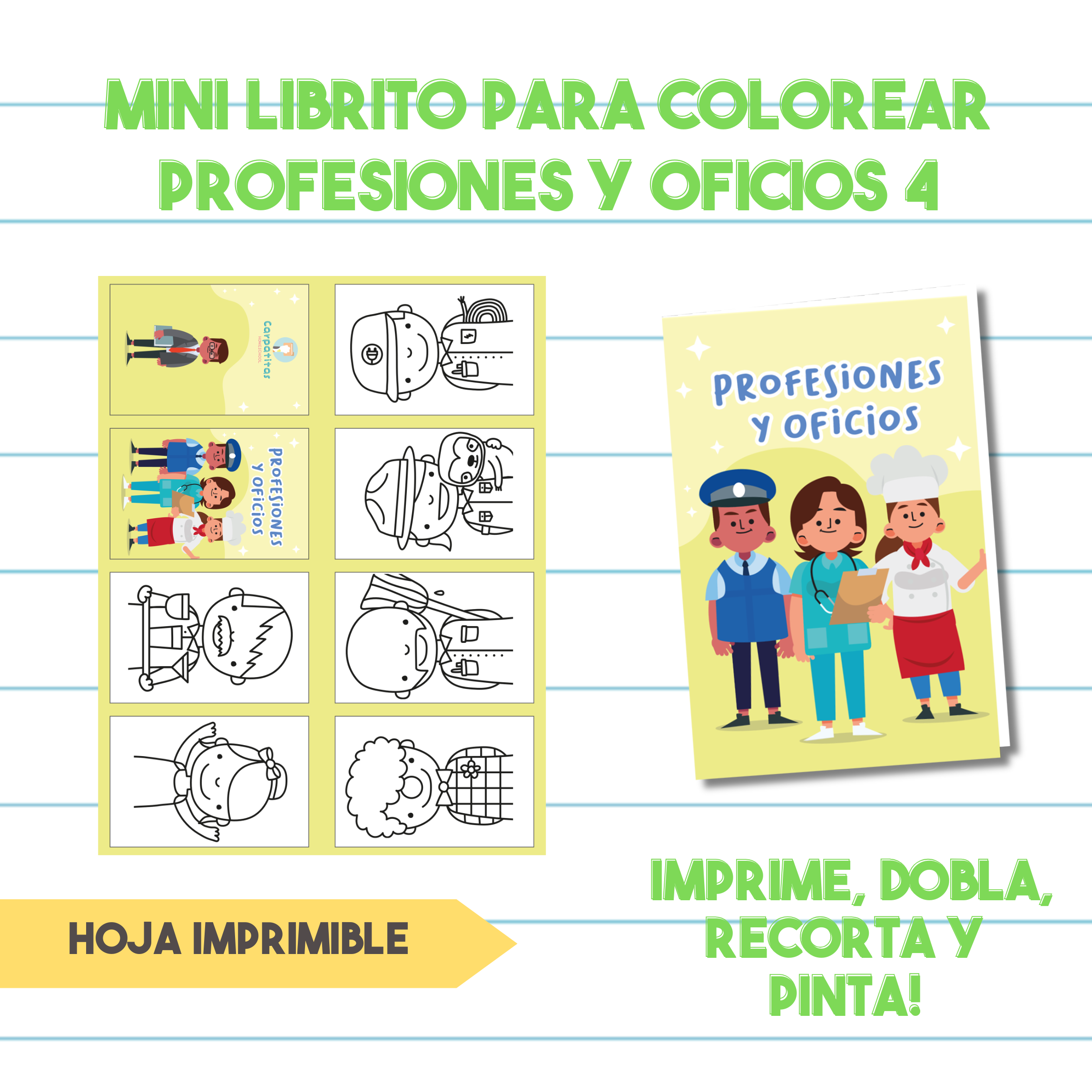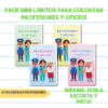 4 mini libritos (portadas diferenciadas por color) con 24 profesiones en total, 6 por cada librito.