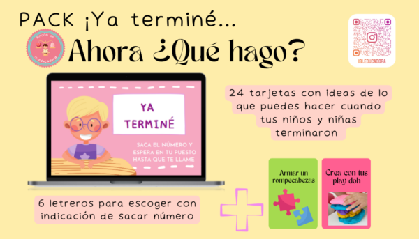 El letrero invita a los párvulos que ya terminaron (y que aún queda tiempo) a esperar en sus puestos con un número y a sacar la actividad. (Ese número puede ser perro de ropa, ticket, hojas, formas, clips, puedes ir variando según lo que tengas para que sea más divertido).El letrero es un facilitador y motivador, pues esperan como si fuera un juego de roles, tal como ocurre en la vida diaria adulta. Además tenerlo visualmente ayuda en el recuerdo para aquellos niños y niñas que necesitan materiales concretos y visuales para lograr los objetivos propuestos.