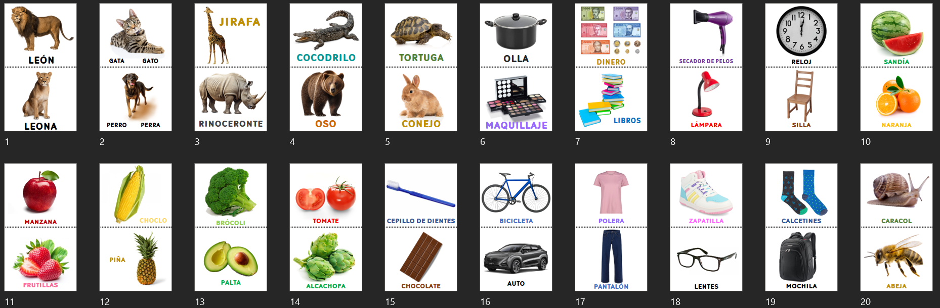 Les dejo este material para imprimir que hice para que puedan observar imágenes junto a los bebés y niñas/os. Son un total de 40 imágenes junto a sus respectivos nombres para la estimulación visual y desarrollo del lenguaje verbal.