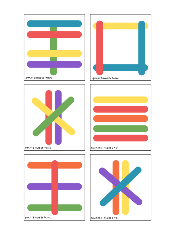 - 24 tarjetas con diferentes formas para copiar con palitos de madera de colores.