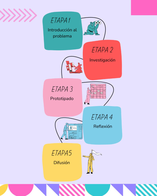 La planificación se desarrolla en dos clases, organizadas en etapas progresivas de introducción, investigación, prototipado, prueba, reflexión y difusión, permitiendo adaptar las actividades a distintos niveles educativos. Incluye orientaciones específicas para educación básica y media, promoviendo la participación equitativa, la autonomía y la toma de decisiones informadas.