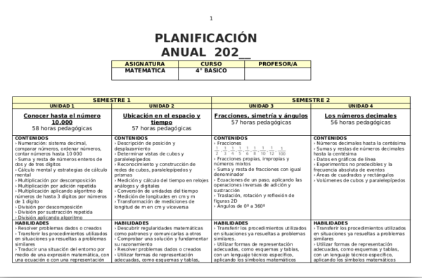 Estas planificaciones incluyen 2 tablas: