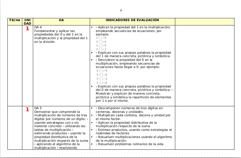 - Además, se ha dejado a la derecha una columna vacía para que el docente la complete con actividades y/o evaluaciones.