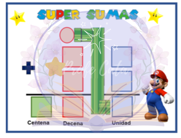 Planilla para enseñar la adición con reserva de Mario Bros.