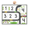 3. En el caso de las plantillas con números en grande, se sugiere utilizar objetos como tapas de botellas, fichas u otro similar, esconderlos en arena, sémola, harina, etc. motivar a buscarlos y ubicarlos en los cuadrados según la cantidad indicada.