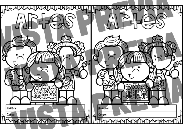 - 1 Documento PDF con portadas para 9 asignaturas como: lenguaje, matemática, ciencias naturales, historia, artes, música, tecnología, inglés y orientación.