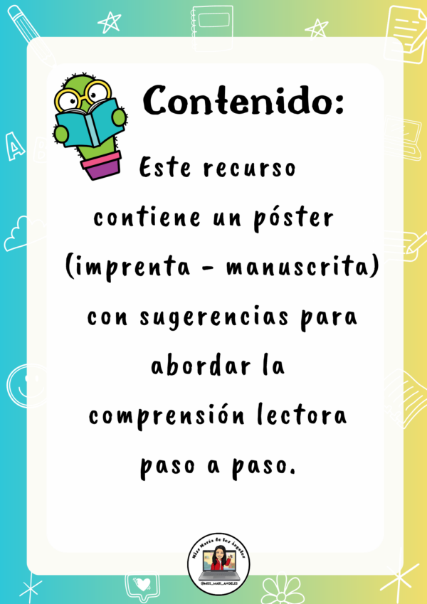 👍 En este recurso encontrarás una serie de pasos que yo utilizo junto a mis estudiantes acompañando su proceso de lectura comprensiva.