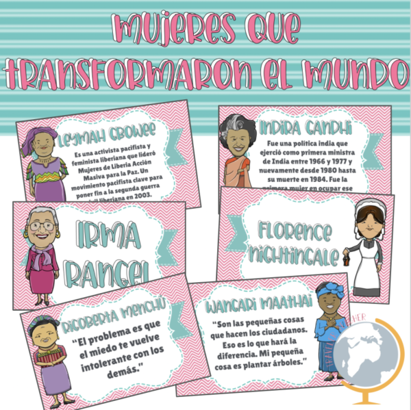 Puedes utilizarlos para realizar una cartelera interactiva, para pedirles a tus estudiantes que realicen una investigación sobre alguna de estas mujeres o para dialogar con ellos sobre las vidas de ellas y el cambio que ayudaron a realizar en la sociedad.