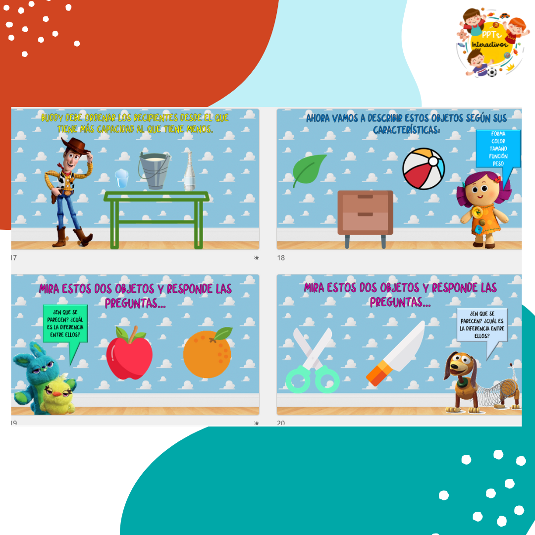 Etiquetas: atributo, clasificacion, color, forma, gamificación, juego interactivo, Kinder, power point interactivos, Pre- Kínder, preescolar, tamaño, toy story