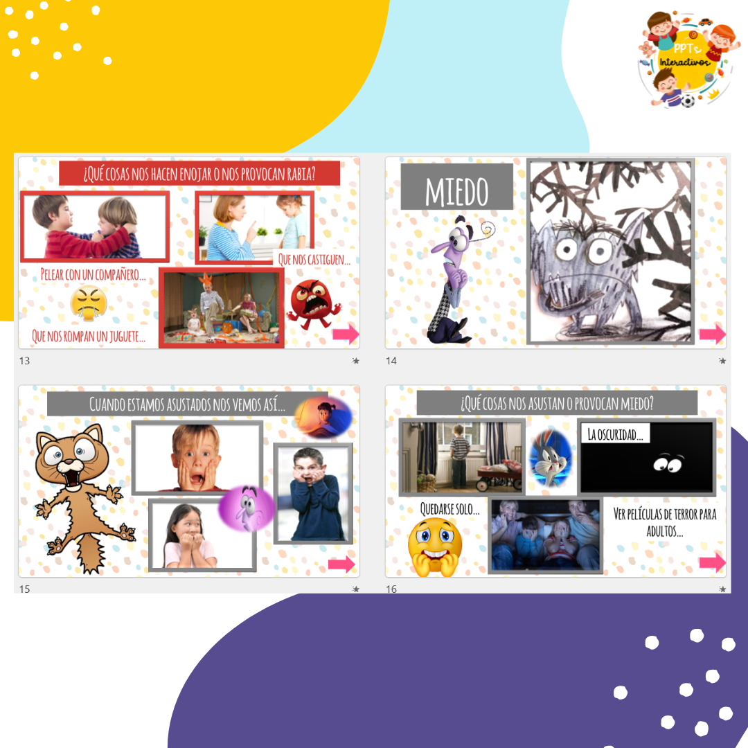 ENFOCADO EN RECONOCER LAS EMOCIONES PARA NIÑOS Y EJEMPLOS DE COMO SE SIENTEN EN LA VIDA REAL.