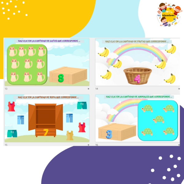 Etiquetas: conteo, cuantificacion, gamificación, juego interactivo, Kinder, numeros 1 al 10, números., power point interactivos, Pre- Kínder, preescolar