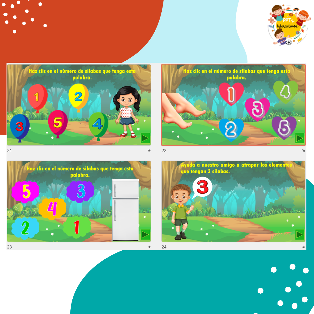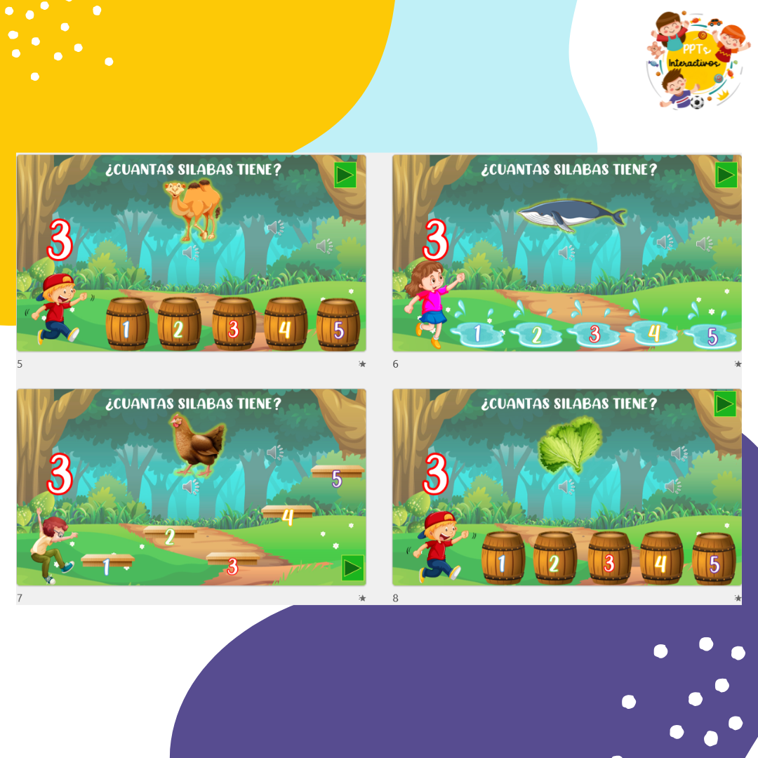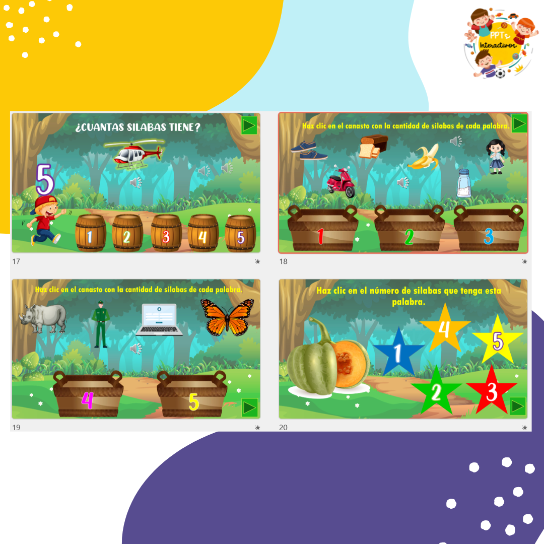 Etiquetas: contar silabas, gamificación, juego interactivo, Kinder, power point interactivos, Pre- Kínder, preescolar, segmentación silábica, sílabas