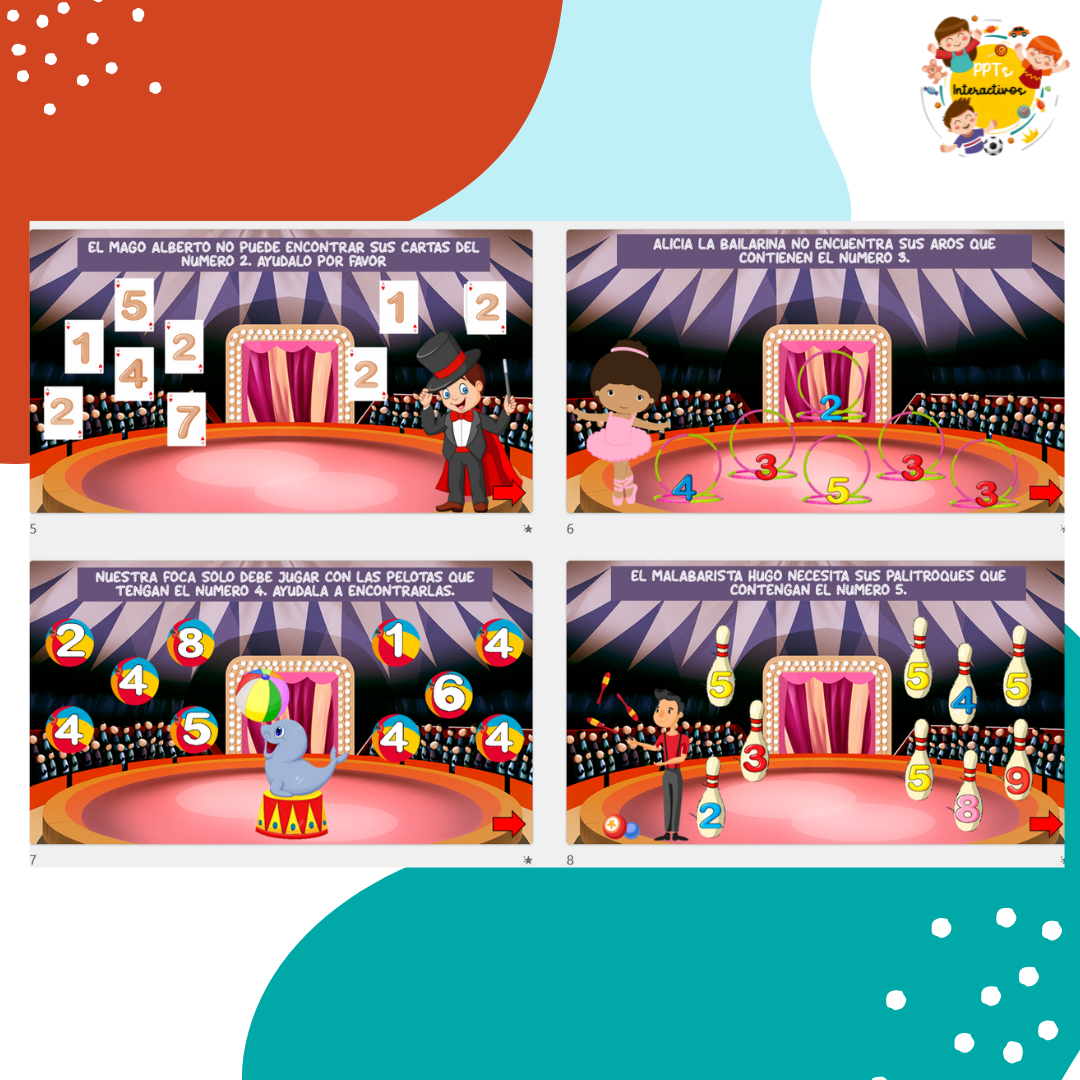 Etiquetas: circo, conteo, cuantificacion, gamificación, juegos interactivos, numeros 1 al 10, números., power point interactivos, ppt, preescolares
