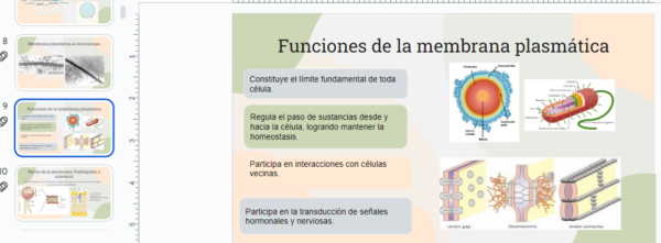 El PPT contiene la estructura de la membrana celular, principales funciones, tipos de transporte (activo y pasivo) y con muchas imágenes que te servirán para explicar los procesos a tus estudiantes.