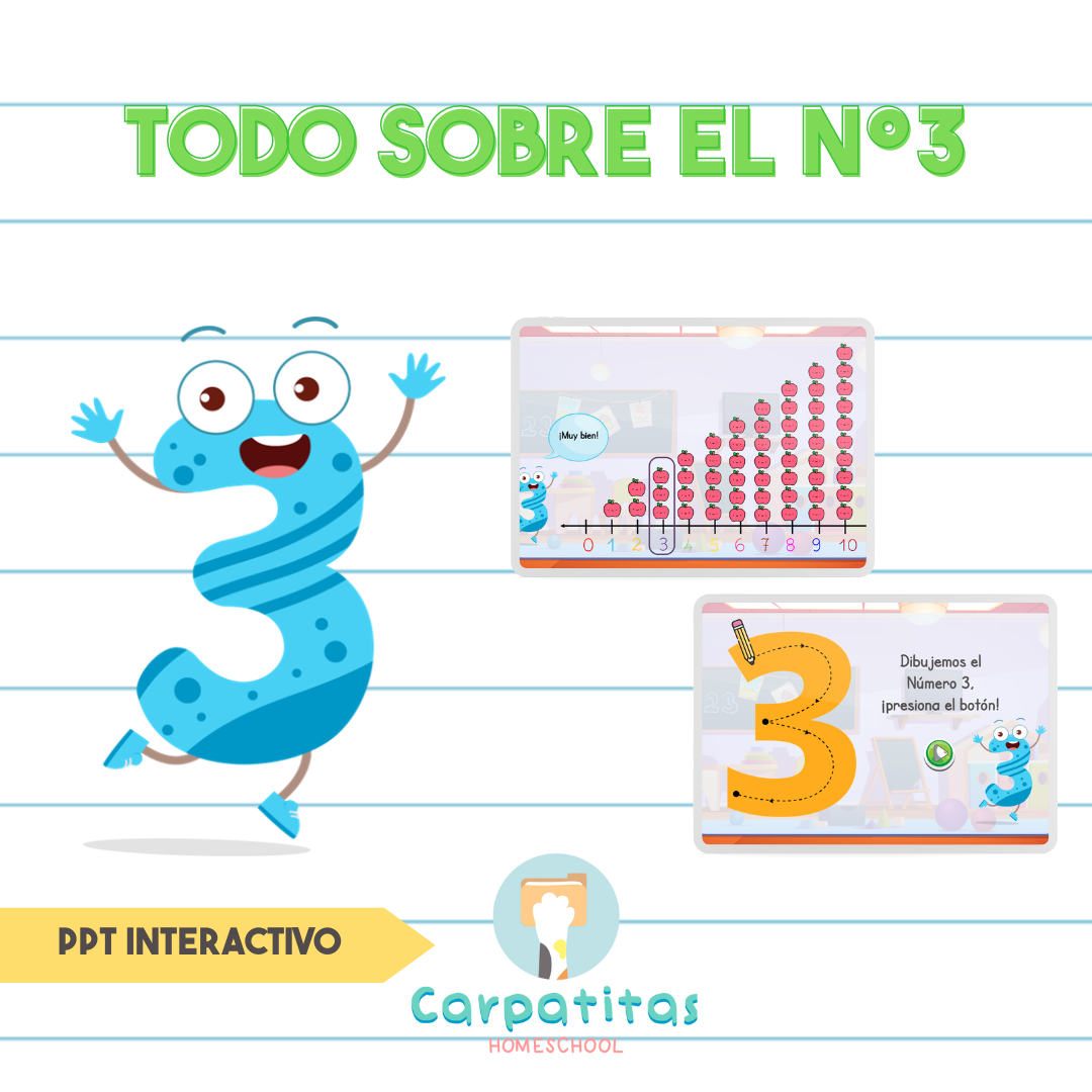¡Todo sobre el N° 3 con temática de colegio para hacer la enseñanza más lúdica! Grafía numérica, pronunciación, trazo, posición en recta numérica, conteo de objetos, identificar número, juegos y desafíos!