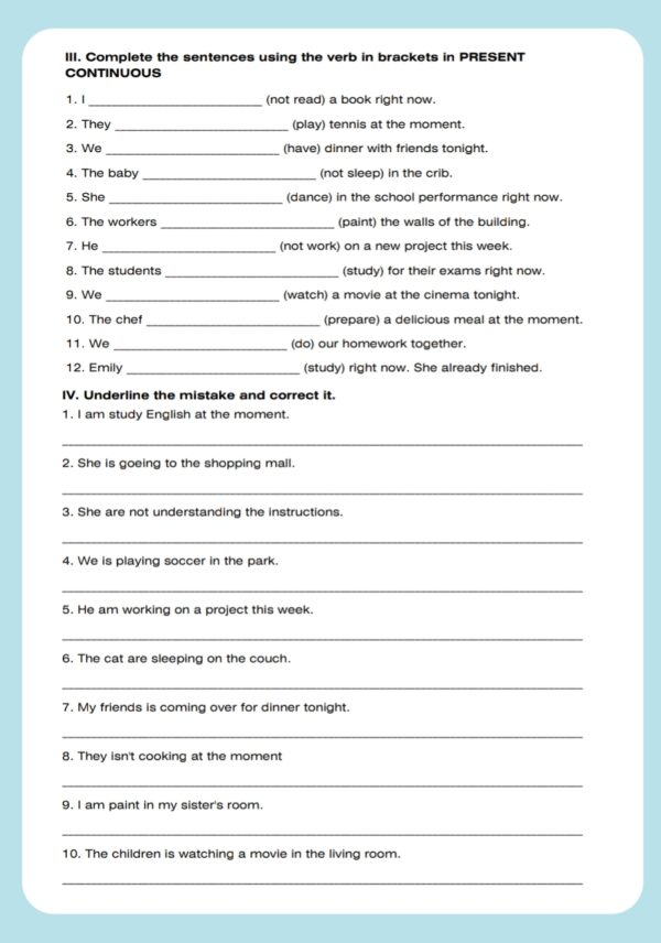 Guía para practicar Present Continuous y Present simple para sus usos correspondientes