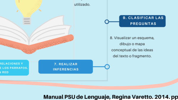 Infografía con los 11 pasos de la lectura comprensiva según Regina Varetto para poner en un PPT o guía.